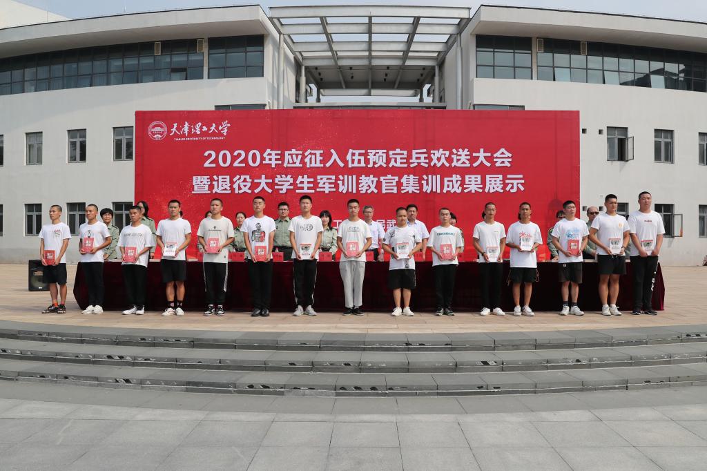 8月30日,我校2020年应征入伍预定兵欢送仪式暨退役大学生军训教官集训成果展示活动在朝阳广场举行。校党委副书记杜长有出席活动,党委学工部、武装部主要负责同志及各学院学生工作负责同志参加。