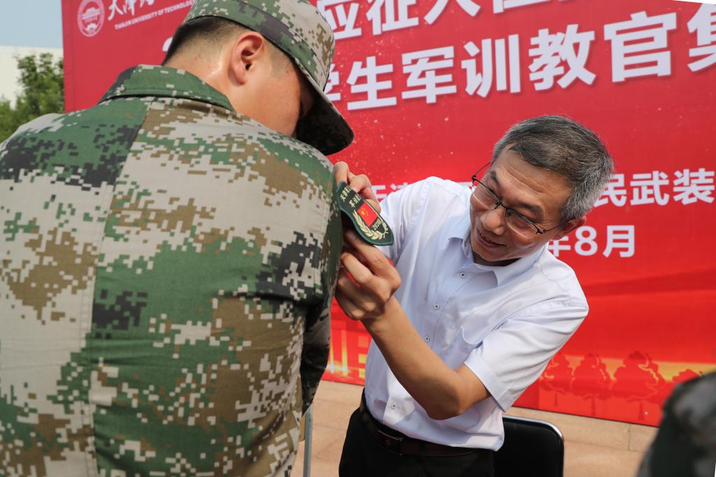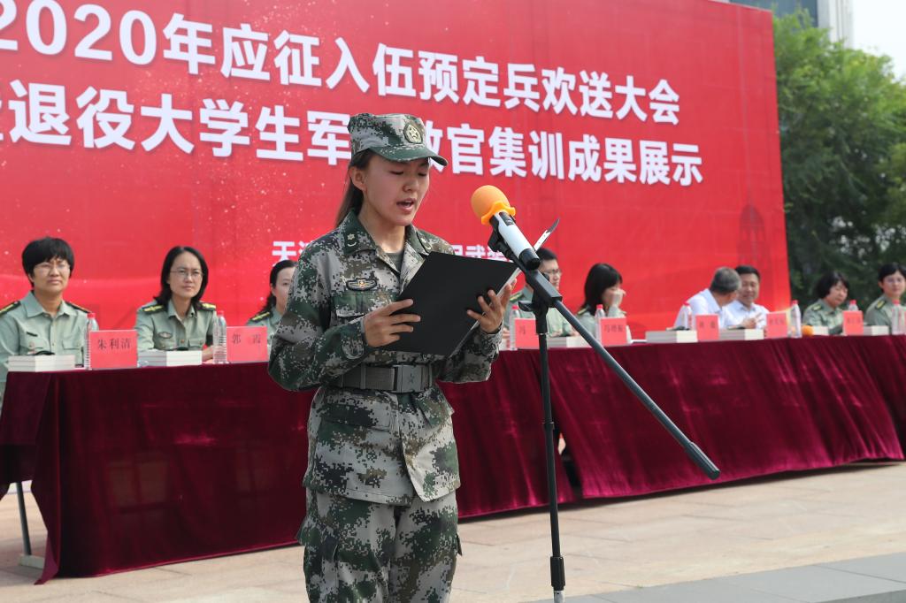 退役大学生代表艺术学院张悦同学在发言中表达了“若有战,召必回”的坚强信念和圆满完成带训任务的坚强决心。随后,与会领导为全体参训人员佩戴臂章。仪式上,武装部负责同志宣读了2020年应征入伍预定兵名单,并向即将携笔从戎的青年学生赠送了书籍《最可爱的人》,勉励他们学习抗疫英模,甘于奉献,做新时代最可爱的人。