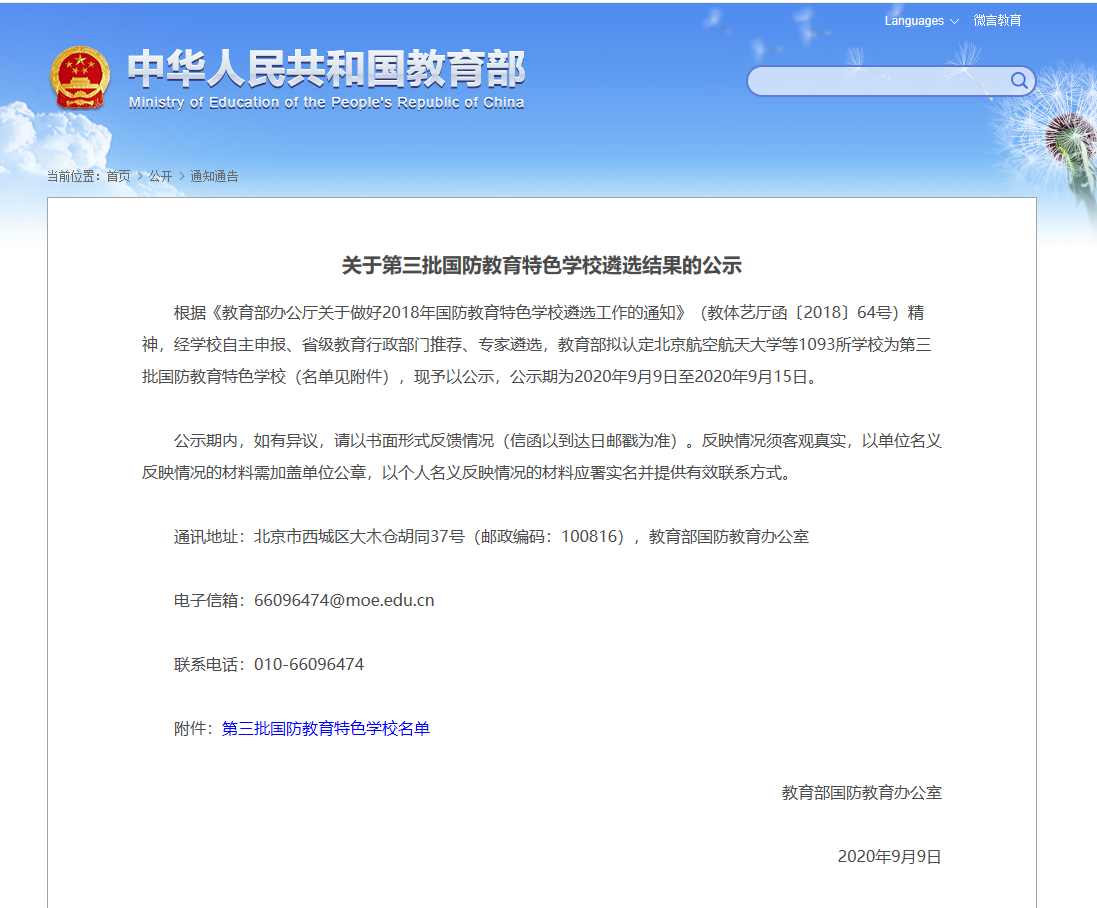2020年入选第三批国防教育特色学校
