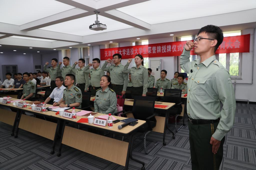 5月29日,我校举办退役大学生士兵荣誉牌授牌仪式暨征兵宣传教育大会,向在校就读的7名退役大学生颁发荣誉牌,并将“光荣之家”牌匾悬挂到学生宿舍。各学院退役大学生、报名应征的大学生代表参加。校党委副书记杜长有出席仪式并讲话,南开区武装部领导关惠强大校莅临指导。