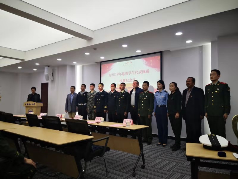 欢迎大会在雄壮的国歌声中拉开帷幕。与会领导为5个军种的退役学生代表佩戴了建校40周年纪念徽章,9名退役学生被聘为“天津理工大学退役大学生教练员”,将运用自身业务专长为在校师生提供技能训练。退役大学生代表、18级材料学院仲凯翔同学表示,立志返校后继续努力学习、刻苦钻研、勇攀高峰、再创佳绩。南开区武装部副部长陈立兴在讲话中充分肯定了我校在征兵工作和退役学生教育管理工作中的特色做法和丰硕成果,并结合高校人才强军的使命与责任,鼓励同学们携笔从戎,实现理想,为校争光。